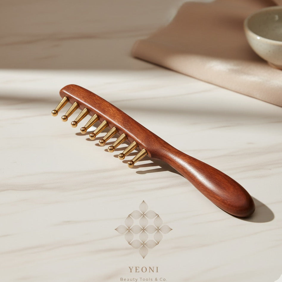 Fabriqué en bois noble et en cuivre raffiné, ce peigne massant allie design naturel et performance pour prendre soin de vos cheveux et de votre bien-être, jour après jour.